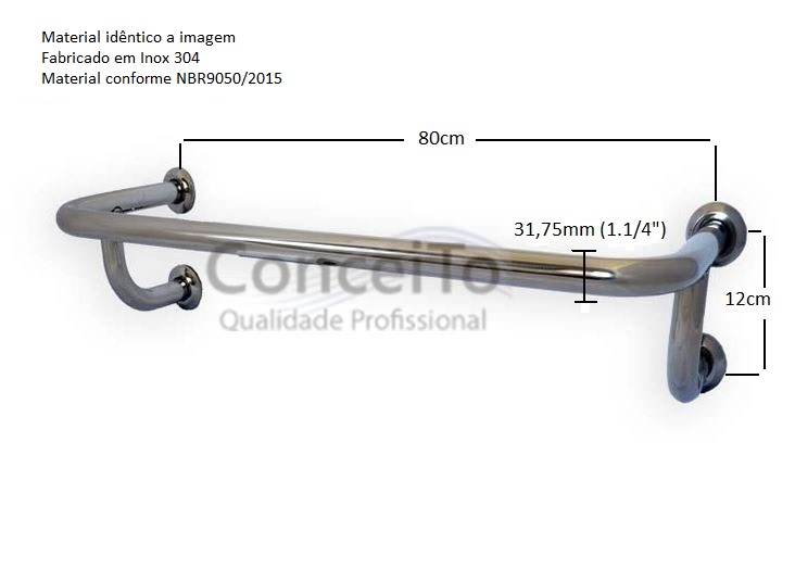 Proporciona facilidade, segurança e auxilia pessoas com deficiência, idosos ou que necessitam de apoio no banheiro. Barra de instalação fácil, acompanha buchas e parafusos.