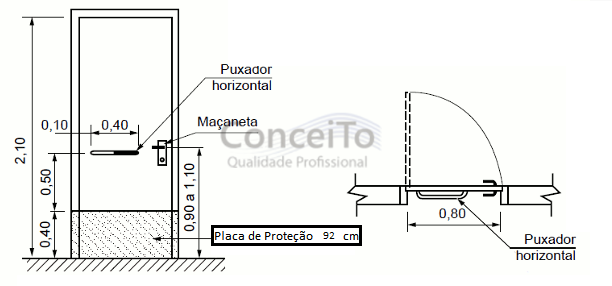 Placas protege a porta contra impactos de cadeiras de rodas, bengalas e muletas. Material conforme a norma NBR9050. Medidas: 40x80cm – 40x82cm – 40×90 – 40×92 – 40×102, fabricamos sob medida, escolha seu modelo ou consulte-nos.