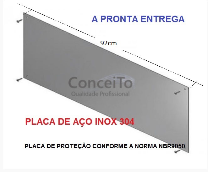 Placas conforme a norma NBR9050. Possui alta resistência a impacto e corrosão. A placa de proteção ou chapa de impacto acompanha os parafusos de fixação. Medidas: 40x80cm – 40x82cm – 40×90 – 40×92 – 40×102, fabricamos sob medidas, escolha seu modelo ou consulte-nos.