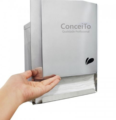 Toalheiro dispensador de papel toalha interfolhas acabamento alto luxo para folha de papel 2 ou 3 dobras, fabricado em aço inox de alta qualidade. Design sofisticado e resistente. Ideal para ambientes com grande fluxo de pessoas como shoppings, restaurantes, clínicas, hospitais, consultórios, e outros.