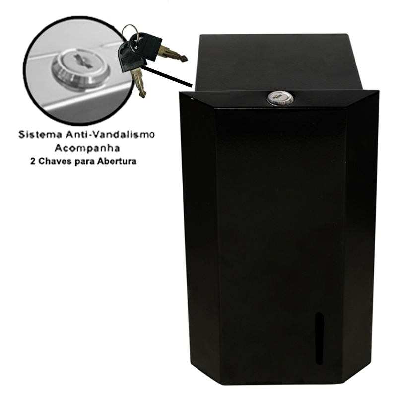 Também garante a facilidade e eficiência na saída folha a folha do porta papel. O suporte de papel em inox, acompanha uma chave de segurança.