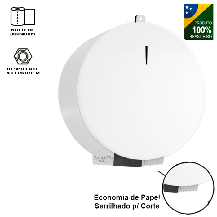 Dispenser de Papel Higiênico Aço Carbono Branco 400MTs c/ Porta Cadeado – 12281