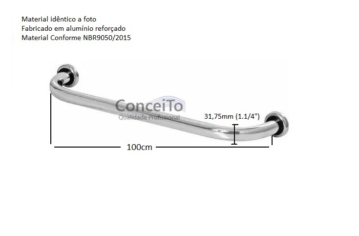 Barra apoio reta 100cm em alumínio para banheiro PNE