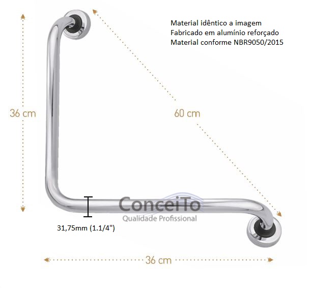 Barra de apoio para box de banheiro 90° graus formato “L” de parede.