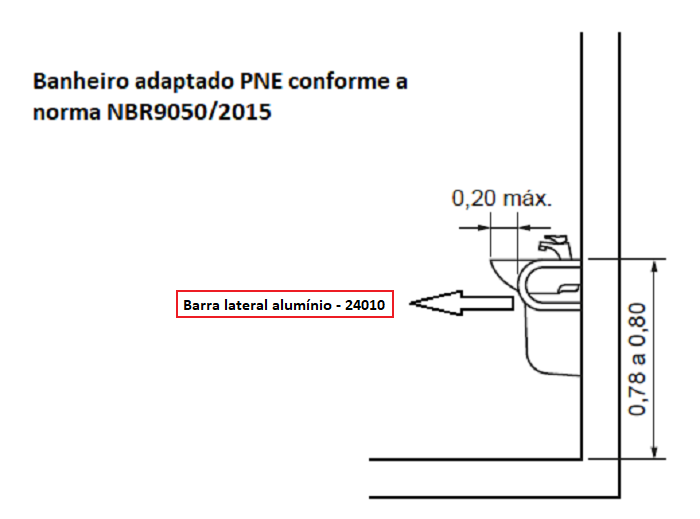 Barra de apoio lateral para lavatório, fabricada em alumínio polida, desenvolvida para instalar ao lado do lavatório, conforme a NBR9050-2015 para dar mais segurança e auxiliar pessoas com deficiência ou que necessitam da barra de apoio no banheiro.