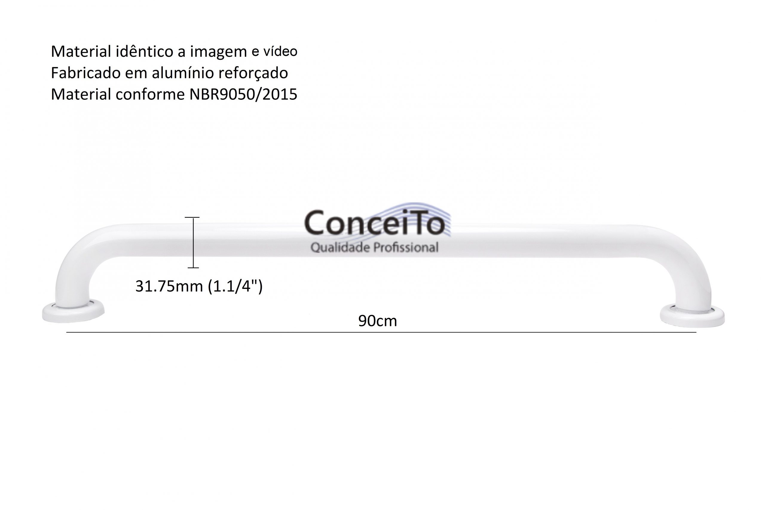 Barra de apoio para banheiro em alumínio reta branca 90cm