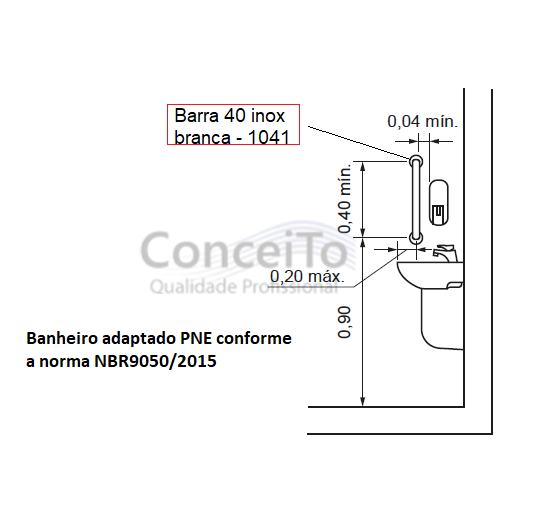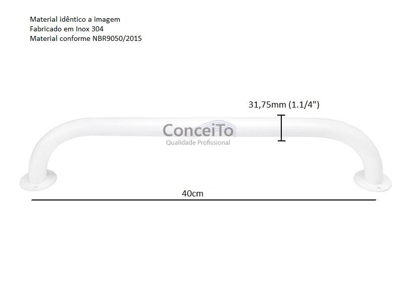 Barra de apoio para banheiro 40 Cm reta em inox 304. Por ser fabricada em material de aço inox 304 com medida do tubo 31.75cm espessura 1.5mm, comprimento 40cm. Conforme a norma NBR9050, a barra é indicada para banheiro PNE, para banheiro de idoso e ambiente público. Desenvolvida para dar segurança e auxiliar pessoas com deficiência, idosas ou que necessitam de apoio no banheiro. Pintura epóxi eletrostática.