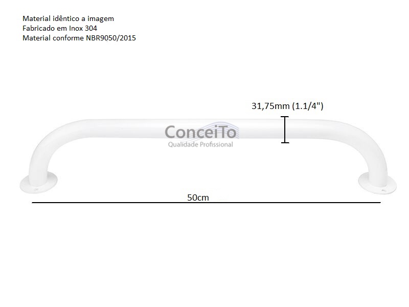 Barra de apoio para banheiro 50 Cm reta em inox 304. Por ser fabricada em material de aço inox 304 com medida do tubo 31.75cm espessura 1.5mm, comprimento 50cm. Conforme a norma NBR9050, a barra é indicada para banheiro PNE, para banheiro de idoso e ambiente público. Desenvolvida para dar segurança e auxiliar pessoas com deficiência, idosas ou que necessitam de apoio no banheiro. Pintura epóxi eletrostática.