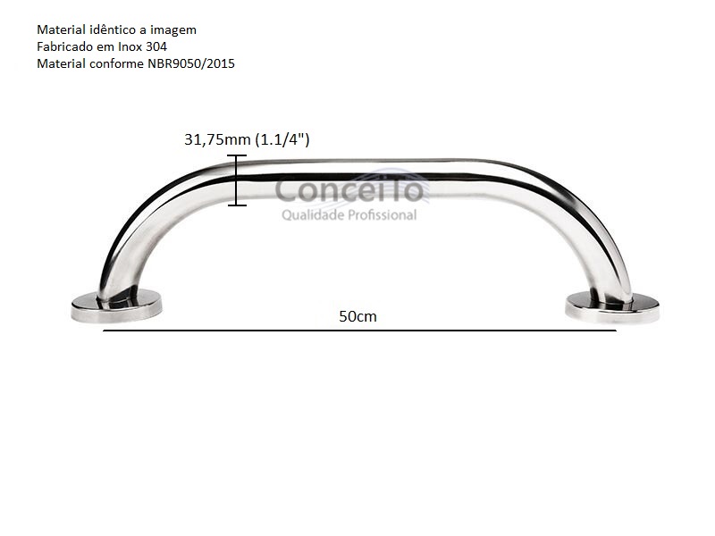 Barra de apoio para banheiro 50 Cm reta em inox 304. Por ser fabricada em material de aço inox 304 diâmetro 31.75mm espessura 1.2mm, a barra é resistente à ação do vapor da água quente, evitando o surgimento de ferrugem. Todas as barras de apoio acompanham parafusos de inox e buchas para instalação. O produto acompanha ainda canopla de inox 304 conforme a norma NBR9050 para um acabamento perfeito.