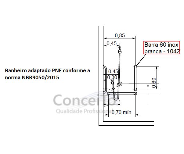 Barra de apoio para banheiro 60 Cm reta em inox 304. Por ser fabricada em material de aço inox 304 com medida do tubo 31.75cm espessura 1.5mm, comprimento 60cm. Conforme a norma NBR9050, a barra é indicada para banheiro PNE, para banheiro de idoso e ambiente público. Desenvolvida para dar segurança e auxiliar pessoas com deficiência, idosas ou que necessitam de apoio no banheiro. Pintura epóxi eletrostática.