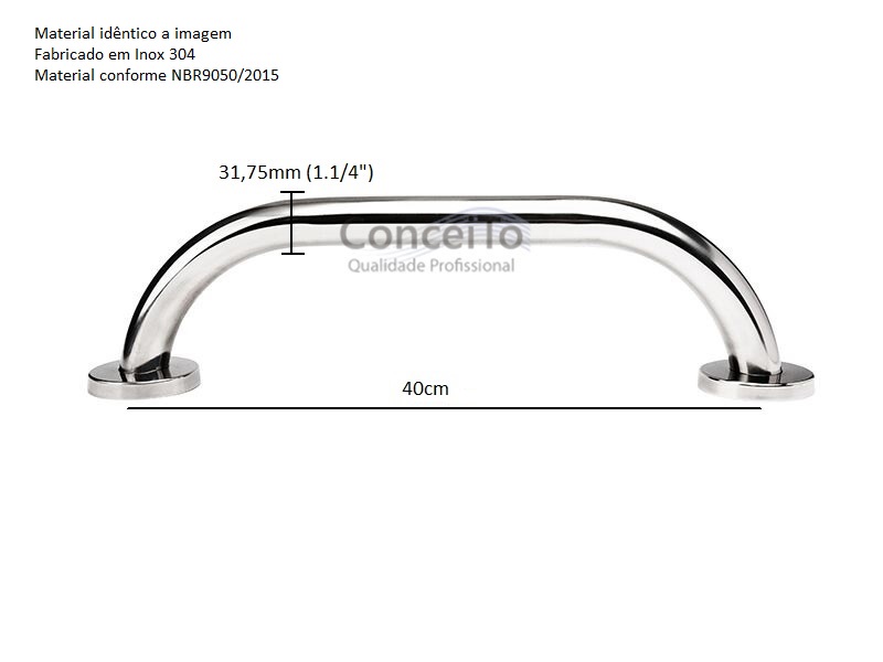 Barra de apoio reta 40 cm para banheiro PNE, indicado para porta de banheiro PNE, lateral de lavatório e adaptação de banheiro para idoso. Fabricada em material de aço inox 304 com medida do tubo 1.1/4. Desenvolvida para dar segurança para pessoas com deficiências, idosos ou que necessitam de apoio no banheiro, barra de apoio conforme a norma NBR 9050. Já acompanha parafuso de inox e bucha.