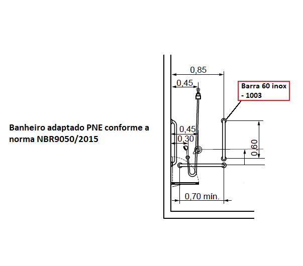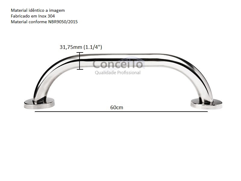 Barra de apoio reta 60 cm para banheiro PNE. Fabricada em material de aço inox 304 com medida do tubo 1.1/4. Desenvolvida para dar segurança para pessoas com deficiências, idosos ou que necessitam de apoio no banheiro, barra de apoio conforme a norma NBR 9050. Já acompanha parafuso de inox e bucha.