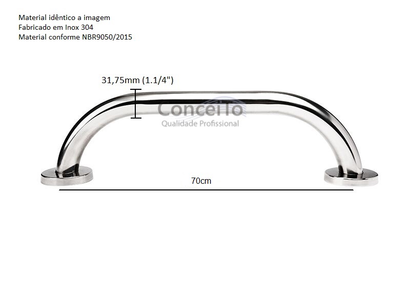Barra de apoio para banheiro em Inox Reta 70cm – Norma NBR9050