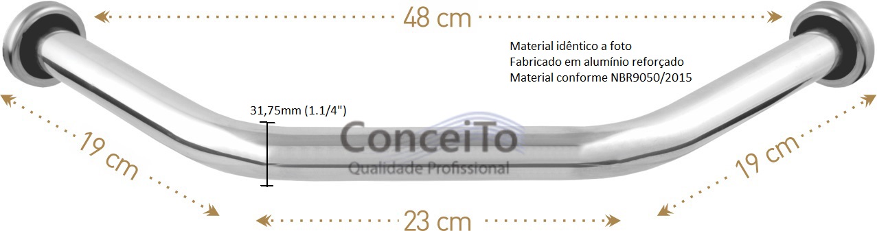 A barra de apoio de canto de lavatório é resistente à ação do vapor da água quente, evitando o surgimento de ferrugem. Todas as barras de apoio acompanham parafusos de inox e buchas para instalação, produto conforme a norma NBR9050 para evitar bactérias no parafuso.