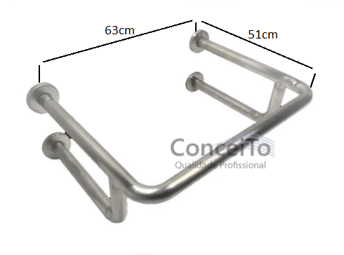 Barra de apoio para lavatório modelo Deca L.51 medida 63×51 em aço inox 304. Conforme a norma NBR 9050. Por ser fabricada em material de aço inox 304, a barra de lavatório é resistente à ação do vapor da água quente, evitando o surgimento de ferrugem e bactérias.