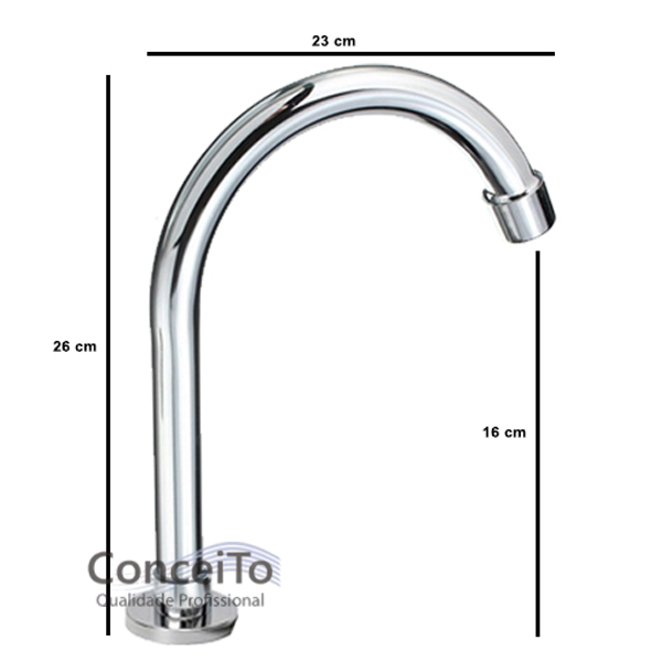 A Bica para acionador lavatório de luxo 26cm é uma torneira de mesa sem registro para torneira de pedal média, projetada para acionador de pedal.