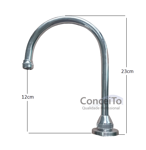 Fabricada em metal cromado, possui arejador. Indicado para hospitais, clínicas, laboratórios e restaurante.