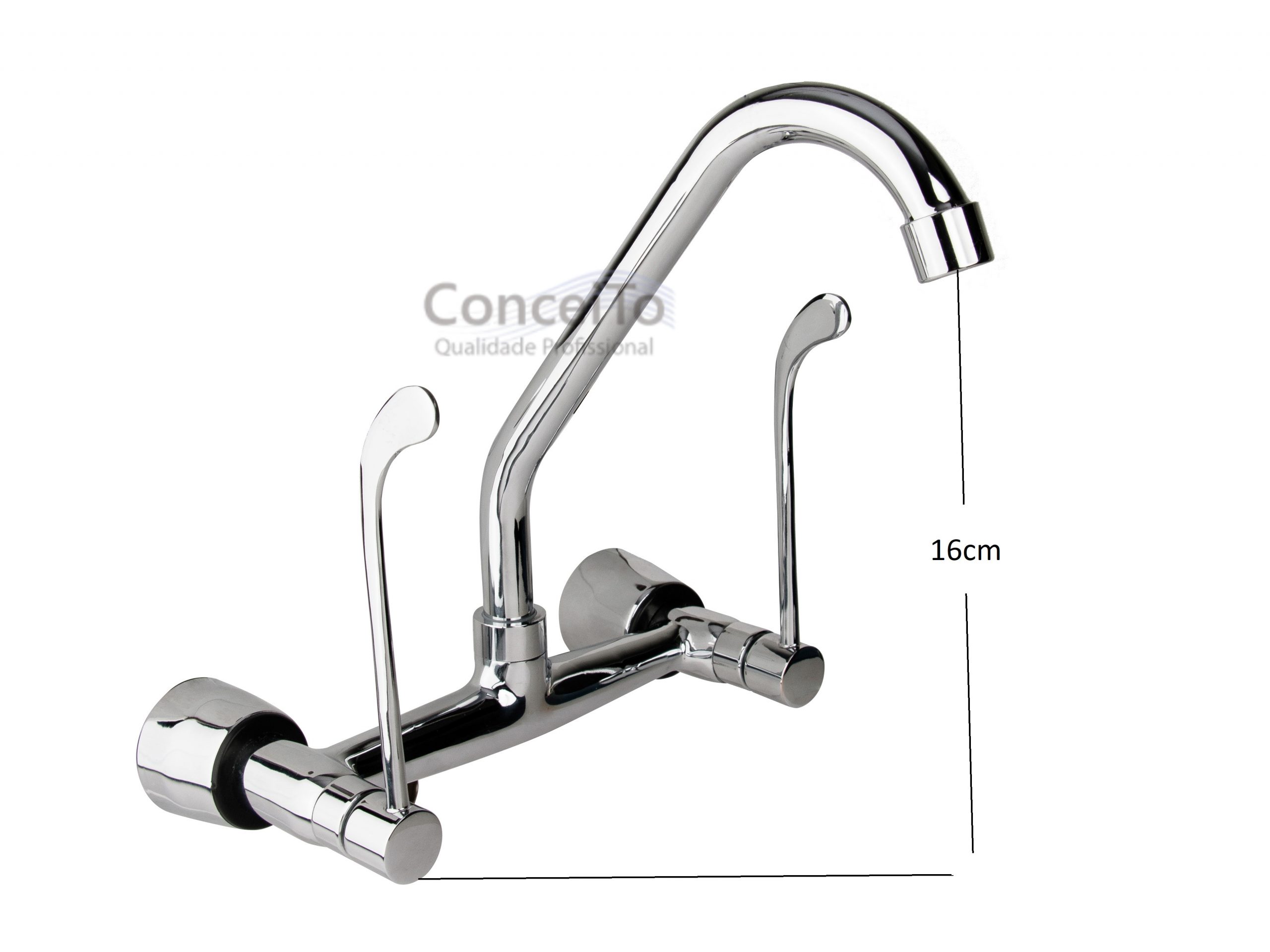O Misturador clínico de parede permite misturar água quente e fria. Fabricado em metal cromado de alta durabilidade e simples instalação, indicado para ambientes clínicos, consultórios, hospitais e cozinhas industriais.