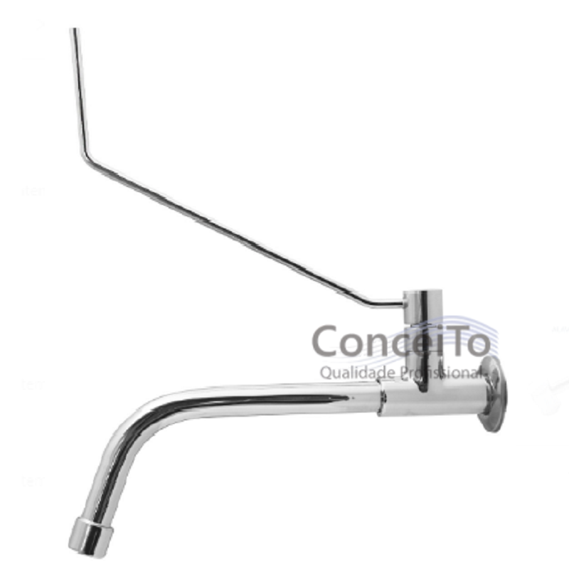 Torneira clínica parede, alavanca longa com arejador fixo com abertura e fechamento através de movimento lateral do cotovelo, onde facilita o profissional a lavar as mãos sem ter contato com as mãos na torneira, e proporciona higiene e evita a contaminação cruzada, pois evita o contato direto com o produto. Fabricada em metal cromado. Garantia de até 10 anos contra eventuais defeitos de fabricação.
