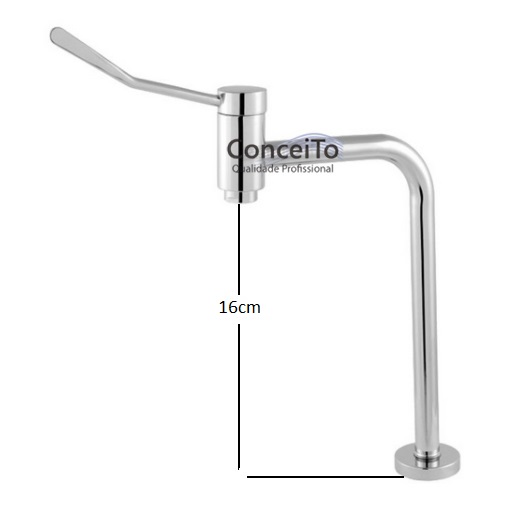 Torneira hospitalar clínica metal link 26cm alavanca reforçada mesa 90°