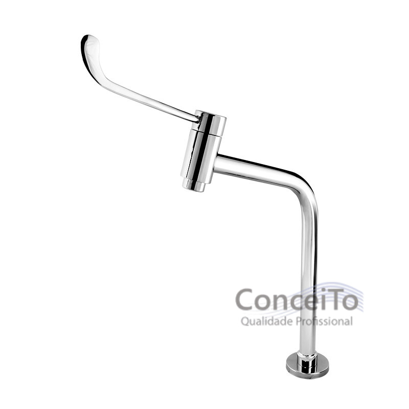 Torneira clínica 45º (Graus) com abertura e fechamento através do cotovelo, assim facilitando o acionamento, máxima praticidade e higiene.