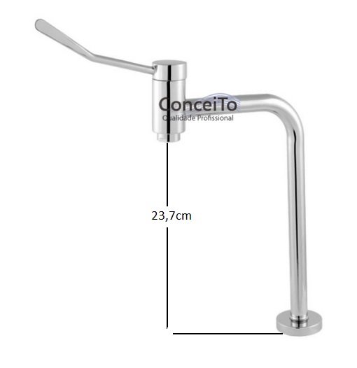 Modelo desenvolvido em metal cromado. De acordo com a norma NBR9050. Altura do arejador até a base de 23,7 cm. Maior conforto ao usuário, facilidade no acionamento. Compátivel com cubas de embutir, cubas de apoio ou sobrepor.