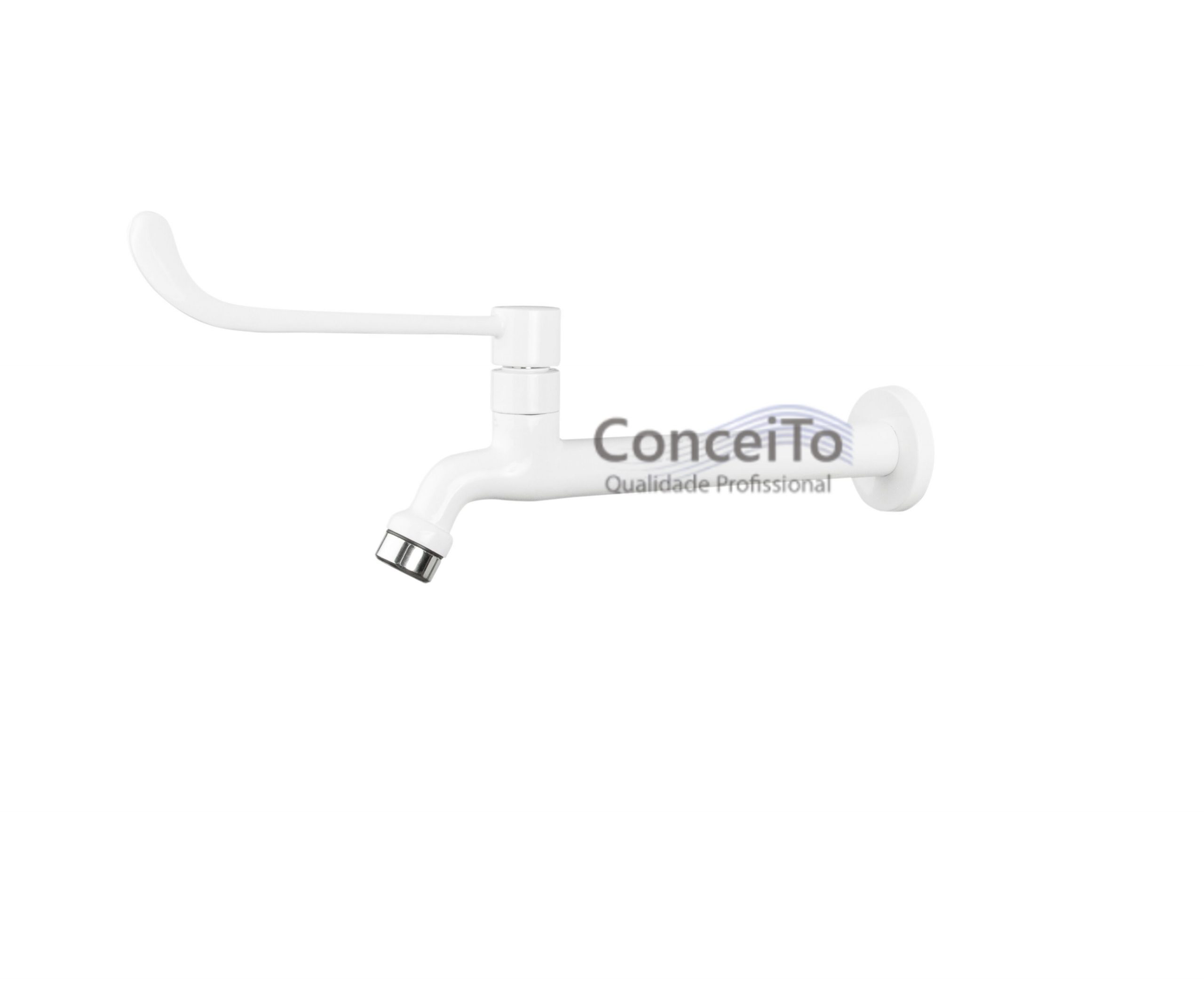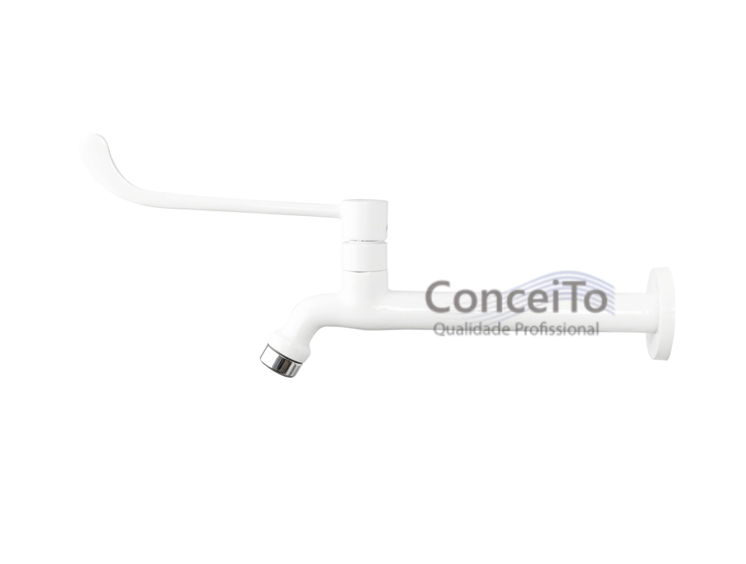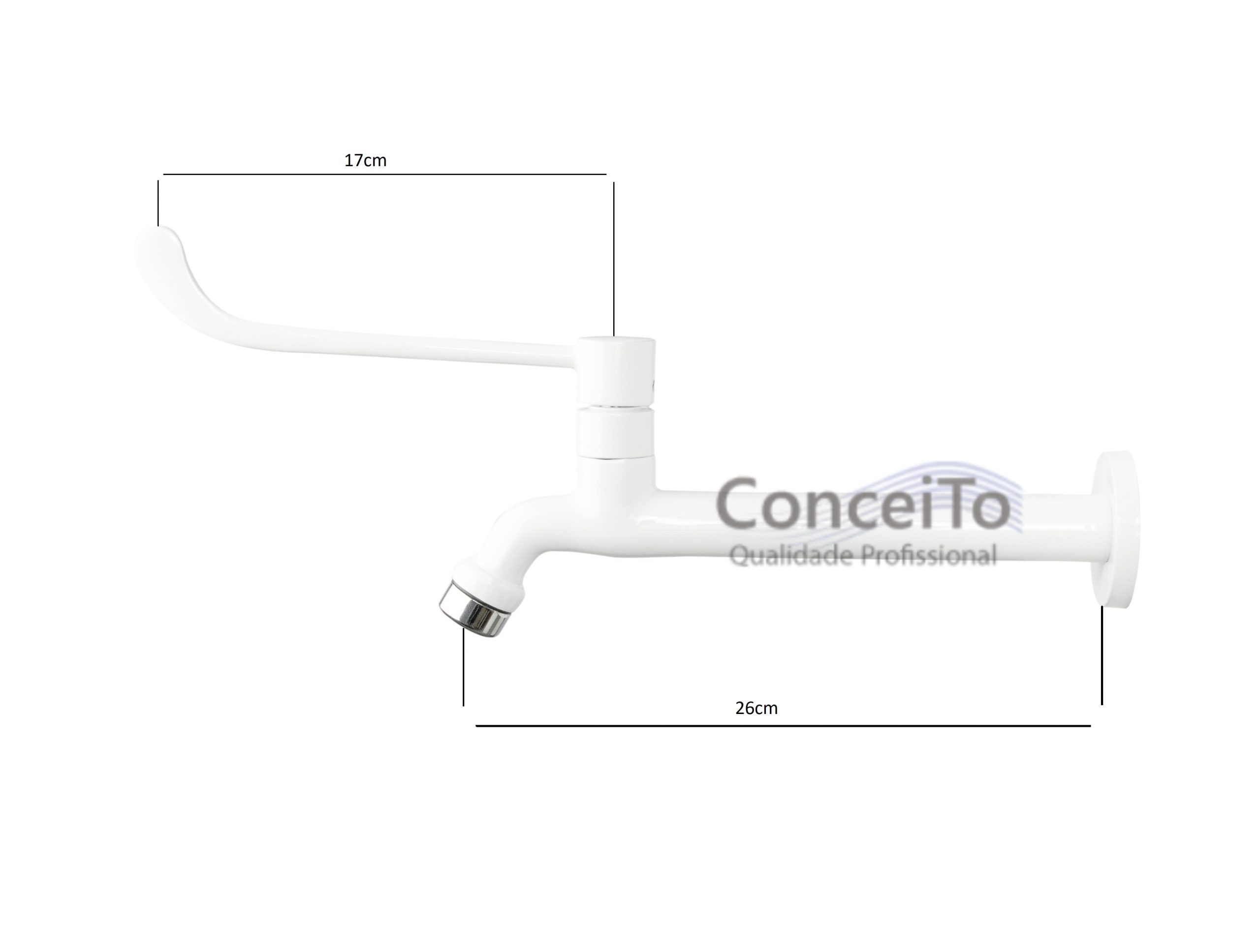 Torneira clínica de parede link com abertura e fechamento através de movimento lateral do cotovelo, que proporciona mais facilidade. Simples instalação. Medida do arejador até a parede de 26 cm. Pintura eletrostática.