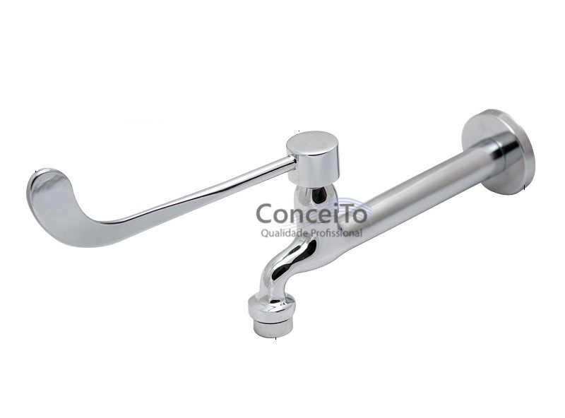 Torneira clínica alavanca com arejador fixo de parede com abertura e fechamento através de movimento lateral do cotovelo proporciona higiene e evita a contaminação cruzada pois evita o contato direto com o produto. Fabricada em metal cromado e possui bico arejador. Garantia de até 10 anos contra eventuais defeitos de fabricação.