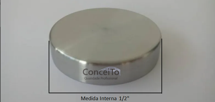 Tampa de canopla e inox 304 polida. Medida interna 1/2′, altura 10 mm. Fabricamos também sob medida e na cor branca.
