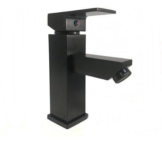 Torneira Monocomando Lavatório Quadrada Baixa Preto Fosco
