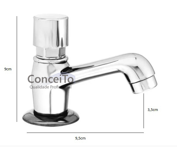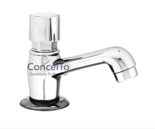 Produto com botão de acionamento em metal, assim como o corpo da torneira. Maior durabilidade garantida.