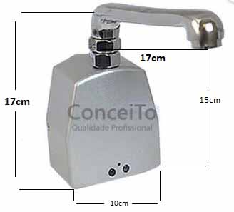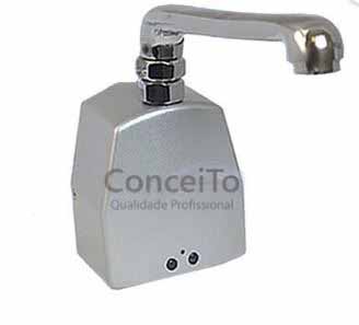 Torneira com sensor bivolt, com funcionamento a pilha e energia, com sistema de programação de distância do sensor, tempo de vazão de água. Com sistema antivandalismo, ajuda a economizar até 70% de economia de água e de energia.