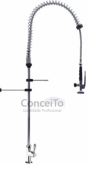 Esguicho de pré-lavagem de mesa, indicada para atender as necessidades em locais de trabalho pesado para cozinha industrial e residencial, ideal para uso profissional com sistema antivandalismo, e para grande fluxo de pessoas. Produto fácil instalação com qualidade superior, proporcionando uma economia de água, com engates reforçados. Ducha manual com trava.