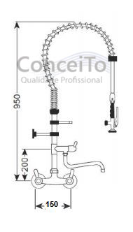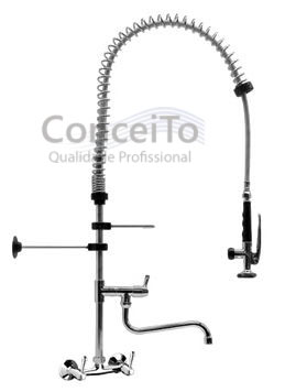 Esguicho de pré-lavagem misturador parede 150mm c/ bica adicional para cozinha industrial