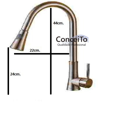 Torneira monocomando gourmet em aço escovado 2 jatos.